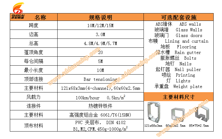 篷房材料: